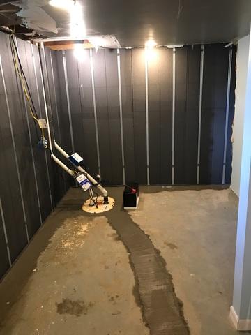 Our team installed our WaterGuard Drainage System, Basement to Beautiful Wall Panels, and TripleSafe Sump Pump System to repair his basement and home repair needs.