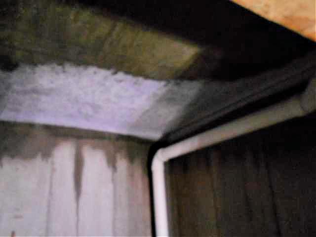 Water was leaking where the ceiling and wall meet, causing water to drain down the wall.