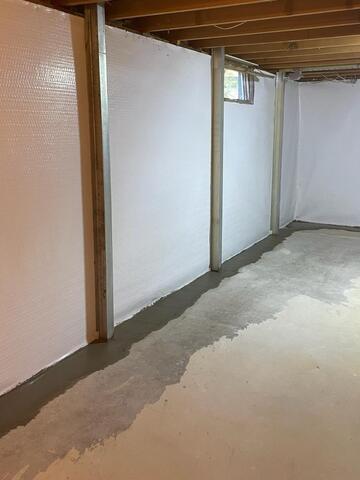 Our Foreman and his production team began the project by breaking out the floor perimeter, forming a trench. In the trench, our team installed our WaterGuard Below-Floor Drain. This drainage system is the most common drainage system we provide for homeowners because of its easily accessible service ports and its ability to collect water seepage from basement walls. Next, our team installed our CleanSpace Wall System Vapor Barrier around the wall perimeter. This vapor barrier is designed to prevent mold and humidity, save money on energy costs, and give the basement a neat and clean appearance. Lastly, our crew installed our TripleSafe Sump Pump System, which is the best sump pump that we provide for homeowners because it triples the protection, solves all three water problems in one unit, and comes with a battery back-up. Our battery back-up is designed to keep the sump pump running if there was a power outage. To complete the project, our Foreman and his crew filled the open-floor gaps with rock and applied new concrete over it. William and Heidi were both happy with the project, and had a great experience from start to finish!